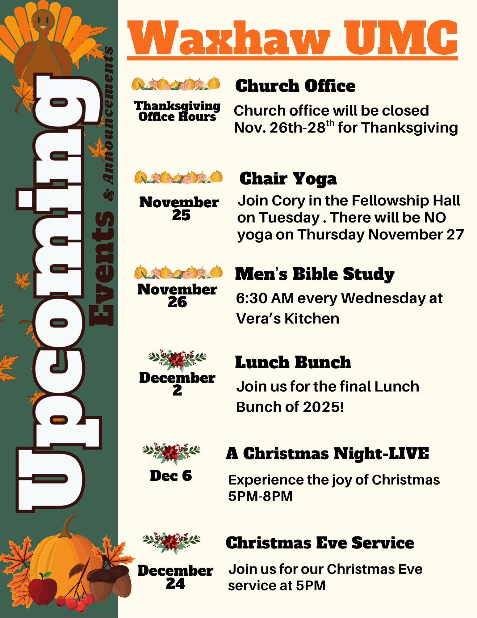 Child care is available during the 9:45 am Sunday morning small group and the 11:00 am worship service. Children will have an age-appropriate lesson and fun! Check-in at the fellowship hall classroom.